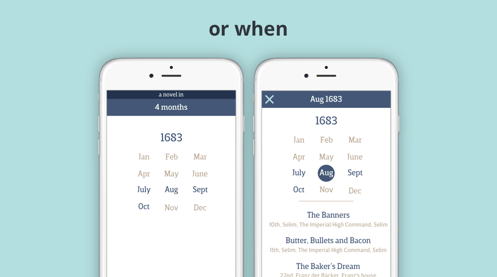 So I went and started building a thing for a phone where you could choose how you want to read a massive story world: by who, when and where.
