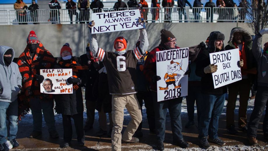 Disgruntled Cleveland Browns fans turn out to FirstEnergy Stadium on Saturday to voice their disappointment in the Browns, who became the second team in NFL history to post an 0–16 season. The “Perfect Season Parade 2.0” made one lap around the stadium, forming a zero, in frigid temperatures.
