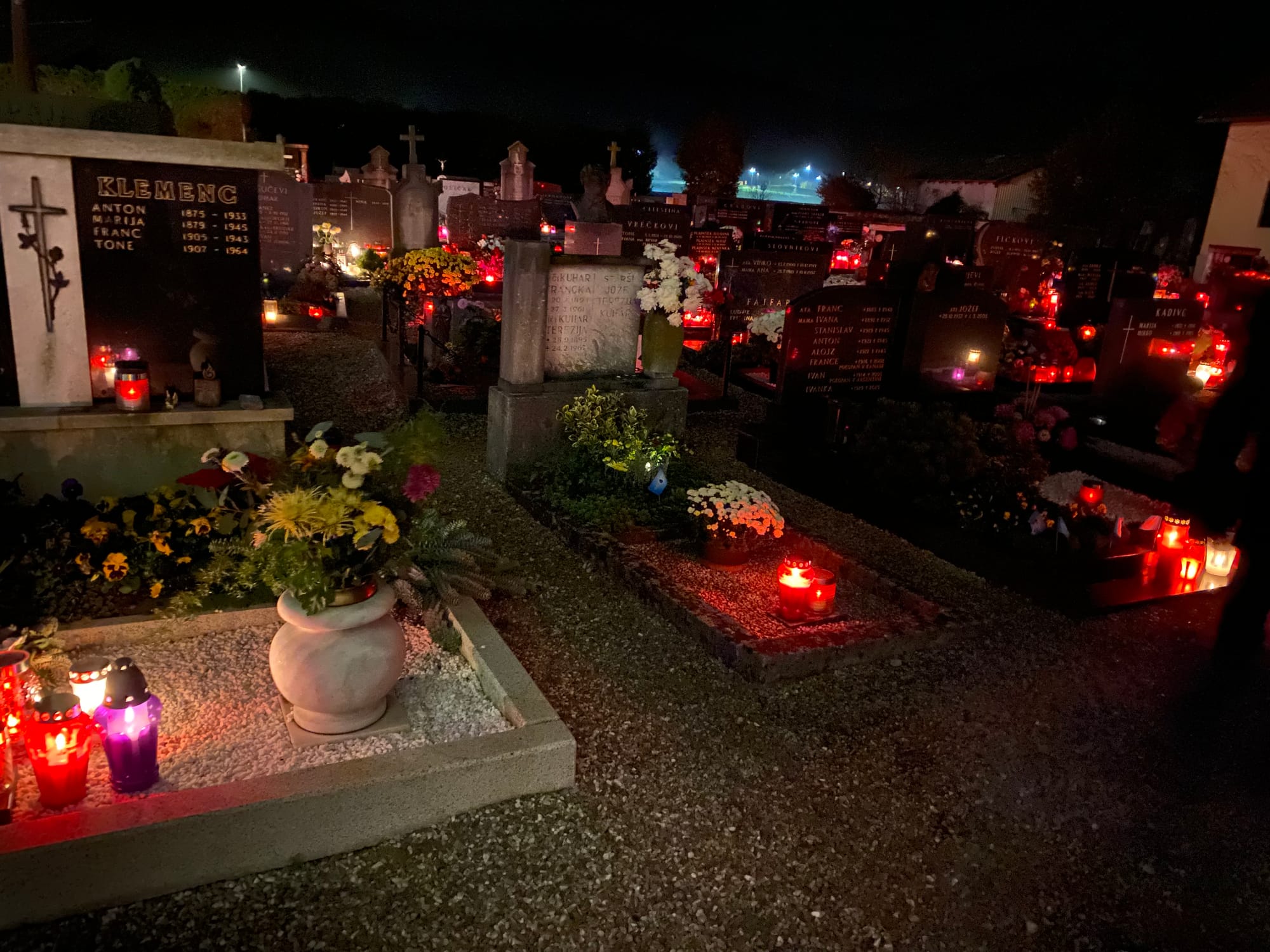 Day of the Remembrance of the Dead as it’s officially known in Slovenia is like some weird version of Thanksgiving or something. It’s not depressing at all and going to the cemetery at night is not only super normal, but isn’t spooky at all. You go to as many cemetaries as you can manage in a day, flowers and candles all over the place and end up at some relative’s where you invariably drink wine (it was just St Martin’s day which is the patron of vintners and alcoholics) and eat some sort of cured meat.