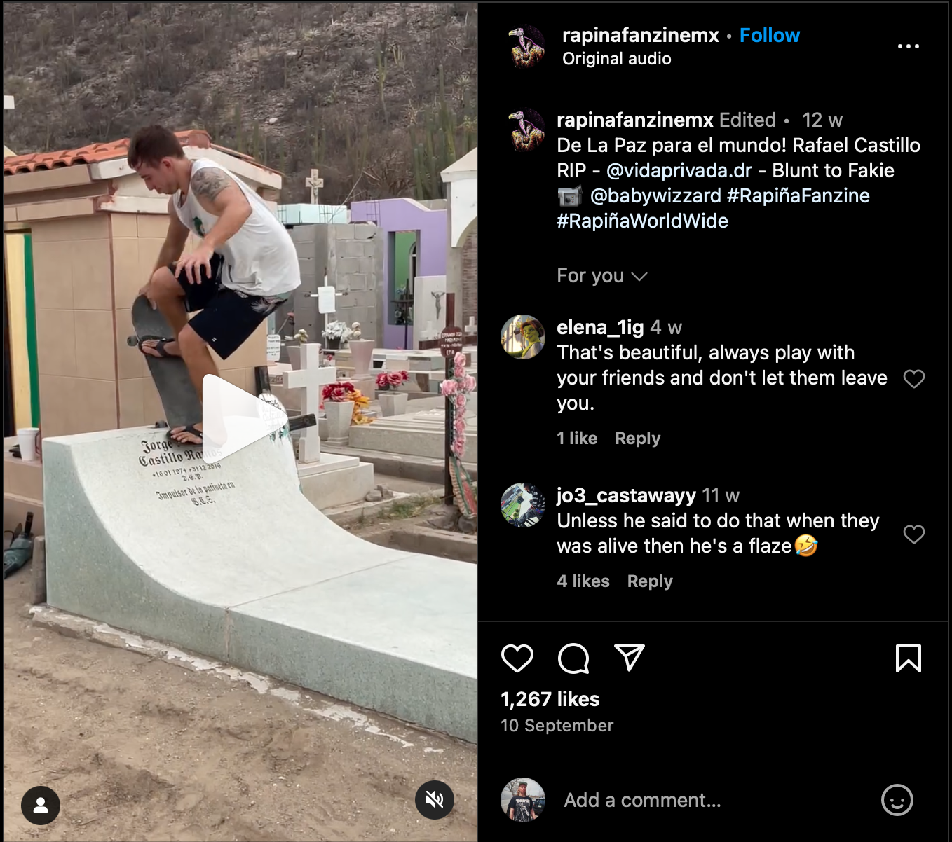 Of course the deceased’s friend can pull a rather decent blunt grab fakie on this tombstone quarter pipe.