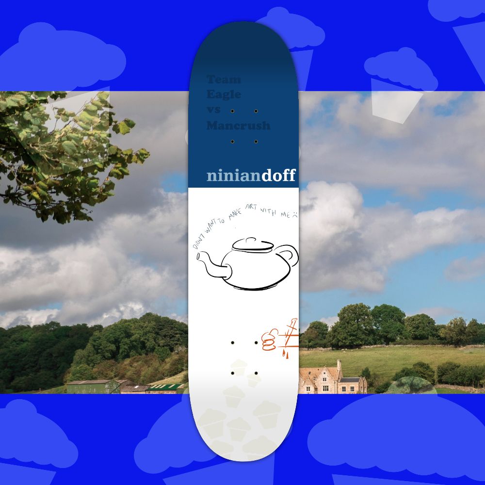 Here is the second graphics drop for Team Eagle vs Mancrush Skateboarding, the Ninian Doff model. You can tell how long this was sitting on my computer because that Guardian logo isn’t even in use anymore. Anyhow, done.