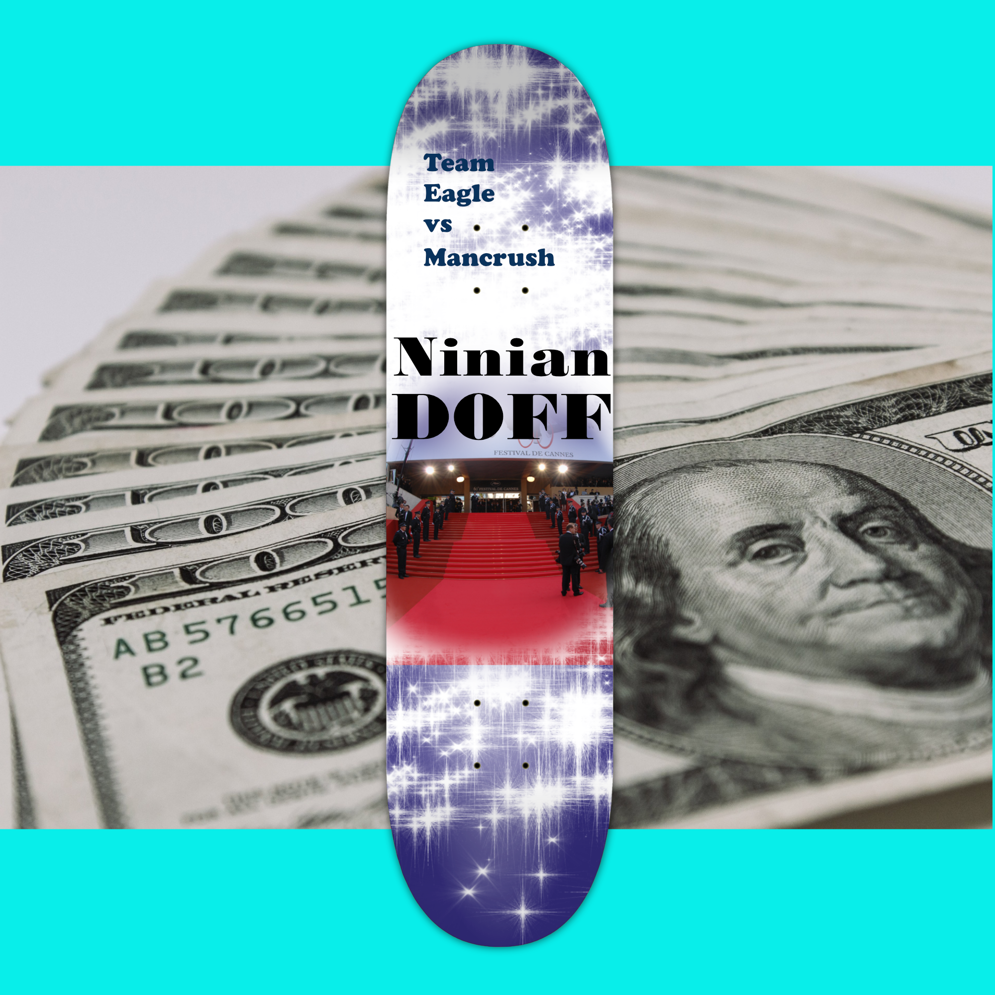 I whole reason I ever even thought of going to art school was because of skateboarding, in particular skateboard graphics. Now that I’m old, barely able to kick flip and wondering what happened to tail slides in general I have at least one comfort. That is that I can ignore the cumulative skills of decades of artistic practice, and finally make skateboard graphics, albeit incredibly pointlessly and just an insanely passive aggressive prompt to get an old friend to reply. So here’s the second Ninian Doff graphic in honour of his collecting an Academy at Cannes with Kanye or whatever.